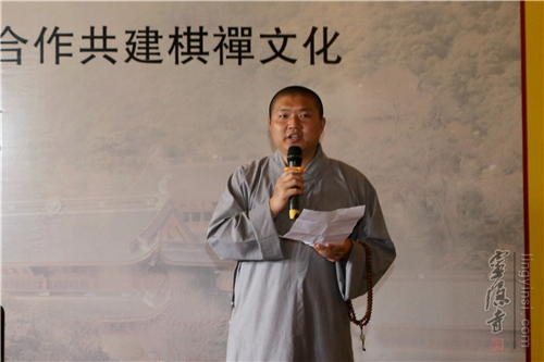 灵隐寺监院廓忍法师代表方丈光泉大和尚致辞,廓忍法师在致辞时讲到:"禅宗文化作为佛教文化的主流,与中国传统文化特别是围棋文化有着共同的文化基因。围棋棋理和佛教教义之间,有着许多类似的相通之处。希望大众以棋为途径,制心一处,参悟妙道。"