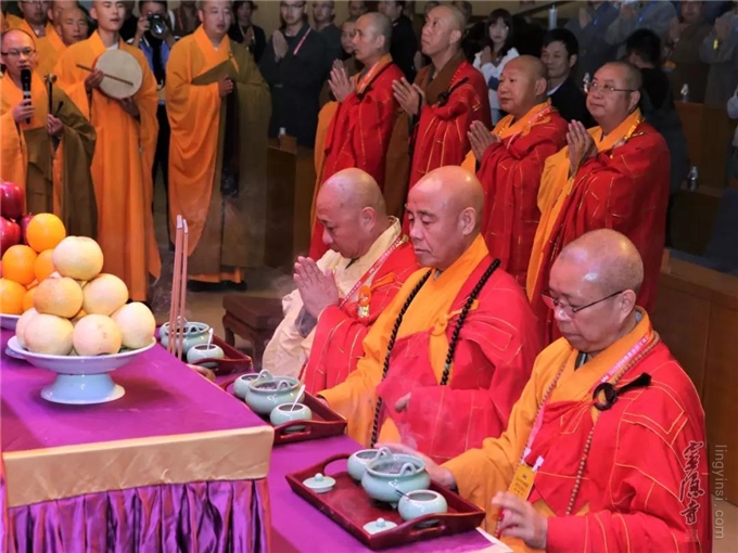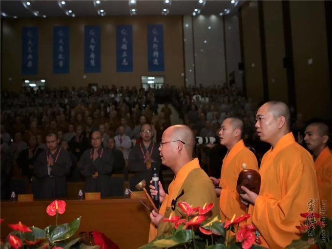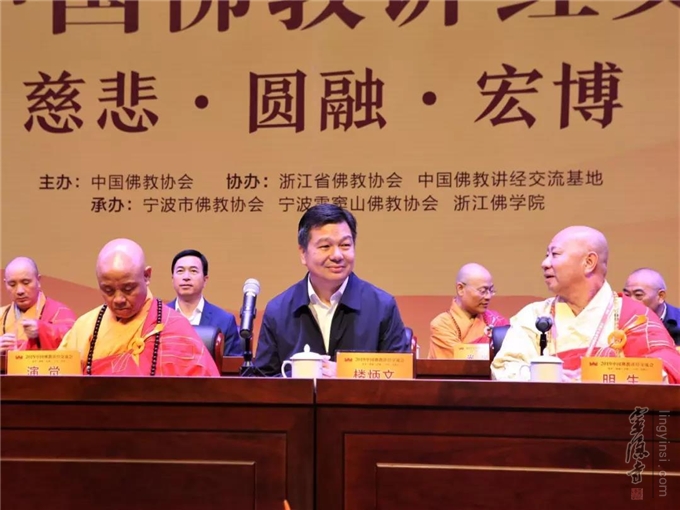 中国佛教协会副秘书长、浙江省佛教协会会长怡藏法师,宁波市委常委、统战部长胡军,浙江省委统战部副部长、省民宗委主任楼炳文,中国佛教协会主持工作驻会副会长演觉法师依次致辞。
