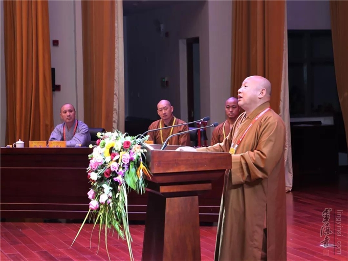 怡藏法师代表浙江省佛教协会、宁波雪窦山佛教协会及浙江佛学院,向出席本次讲经交流会的各级领导、诸山大德、各位评委、各位讲经法师、听经居士、各界来宾表示热烈的欢迎!