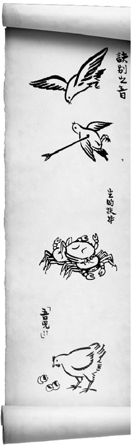450幅画,有的描绘了万物和谐的世间美景,有的抒发了对生命的礼赞或感伤。一花一草、小猫小狗、小孩老人……画面上一幕幕,都是寻常世界的平凡样子,简洁通俗,虽然出自大师手笔,缺一点也不难懂或晦涩。这平凡样子里包含着种种情感:一只鸟儿觅食的欢快,一只蜻蜓受伤的痛苦,一匹马儿念母的伤感,一条黄鳝护子的情怀,一只小狗护主的忠诚……而丰子恺想说的,又何止"护生"而已。诚如马一浮先生在《护生画集》序言中所说:"护生者,护心也","去除残忍心,长养慈悲心,然后拿此心来待人处世"。