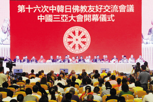 第十六次中韩日佛教友好交流会议27日在三亚隆重举行。中、韩、日三国佛教代表及四众弟子、各界嘉宾500余人出席会议,围绕主题———"自然灾害后的心灵救助"展开深入研讨,并通过了中韩日佛教友好交流《共同宣言》。