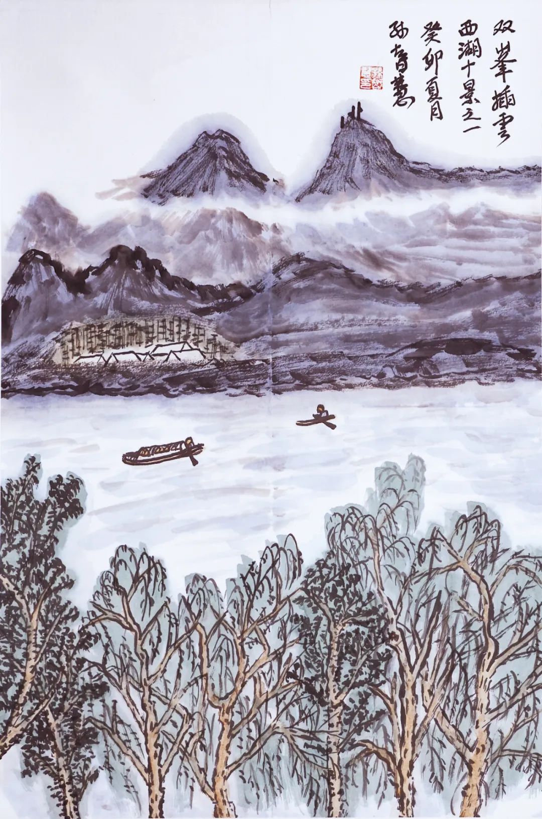 55·绘画山水·《秋林溪畔闲对话》·章美珠