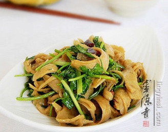 5、起锅前加入香菜段翻炒均匀就可以了。