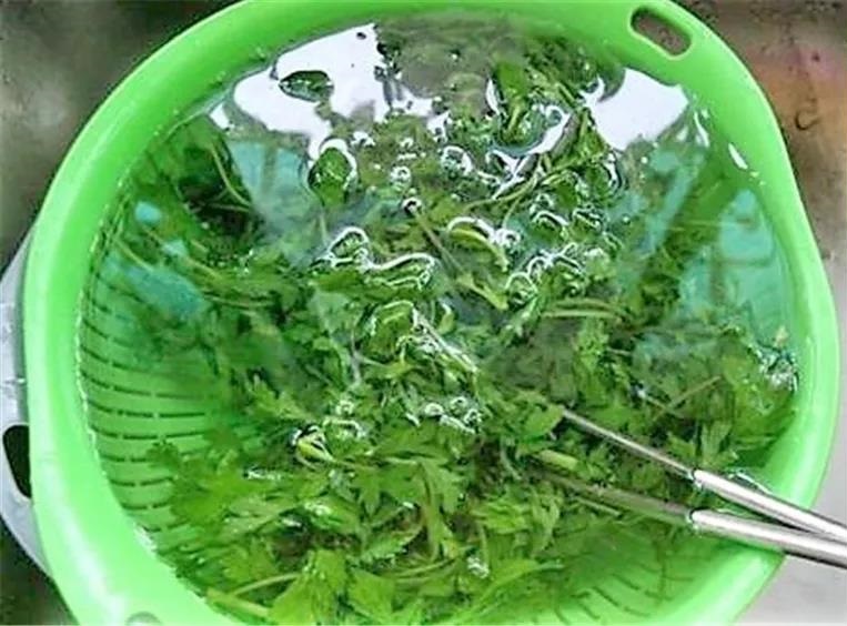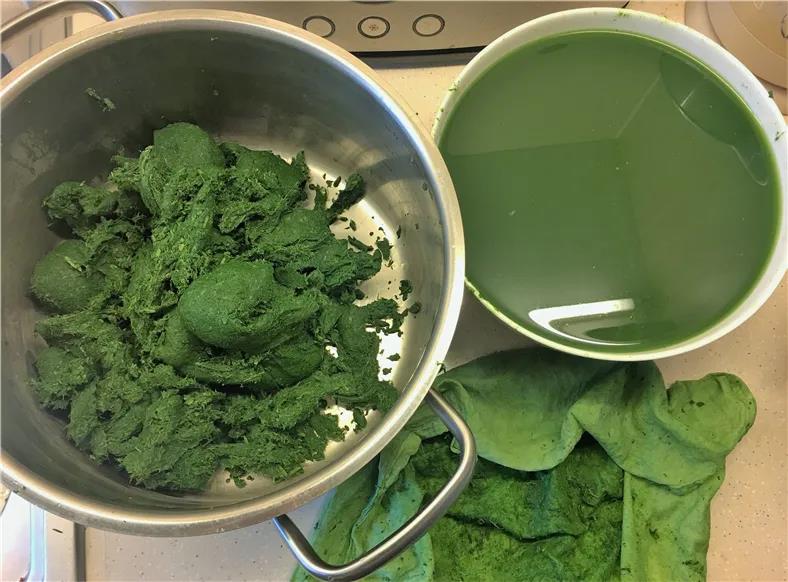 焯过水的艾青,捞出立马放在冷水里过一下。尽量保持艾草新鲜嫩绿。