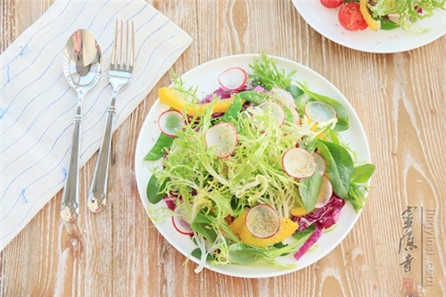 【主料】:苦菊1颗、樱桃萝卜2个、紫甘蓝100克、圣女果3个、鸡毛菜50克、甜椒(黄)1/2个、荷兰豆10个、花生仁(生)50克、白芝麻(熟)2勺