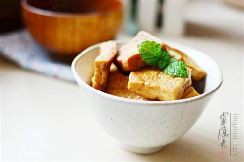 2、卤水汁加水烧烤,放入豆腐煮一分钟。