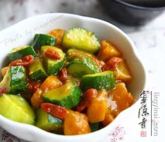 南瓜 、黄瓜、枸杞子、水淀粉、植物油。