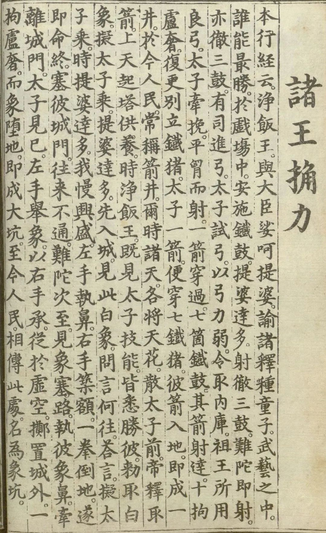 本行经云。净饭王与大臣娑呵提婆。谕诸释种童子武艺之中。谁能最胜。