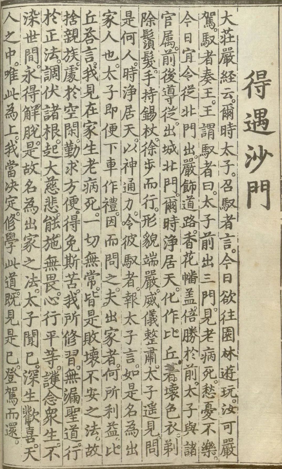 太子听了,深生欢喜,遂赞叹说:“善哉善哉!天上人间,唯此为上,我当决定修学此道。”这一回出城,太子的满腹愁思一扫而光,于是怀着喜悦之情登驾而还。