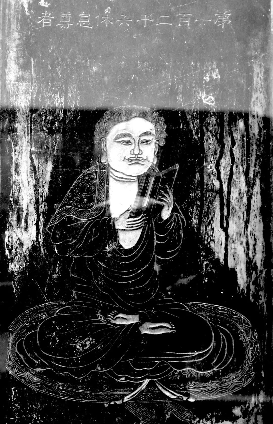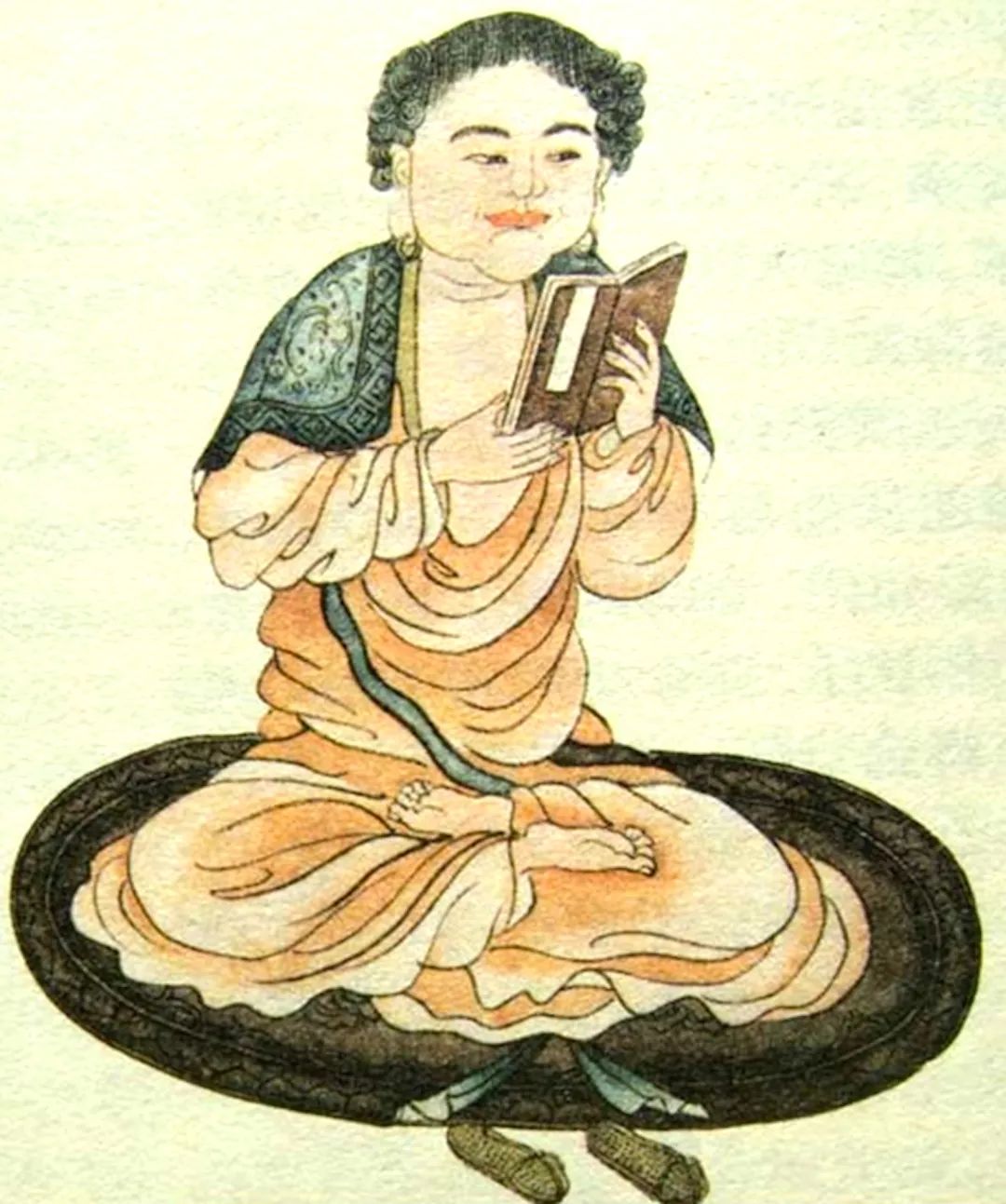 尊者又称作多睡贤者。他在修持的时候,眼睑微阖,目光内敛,似乎常常处于梦寐之中。