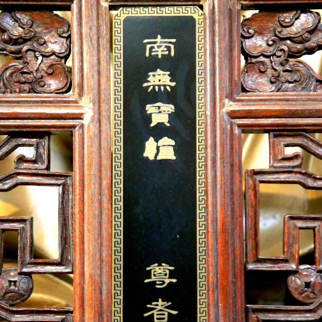 尊者法相所现为奋然而坐,左脚跷于右腿上,左手执念珠,目光如炬,神态威猛庄严。尊者法力无边,神通广大,能降伏邪魔,发菩提之心。