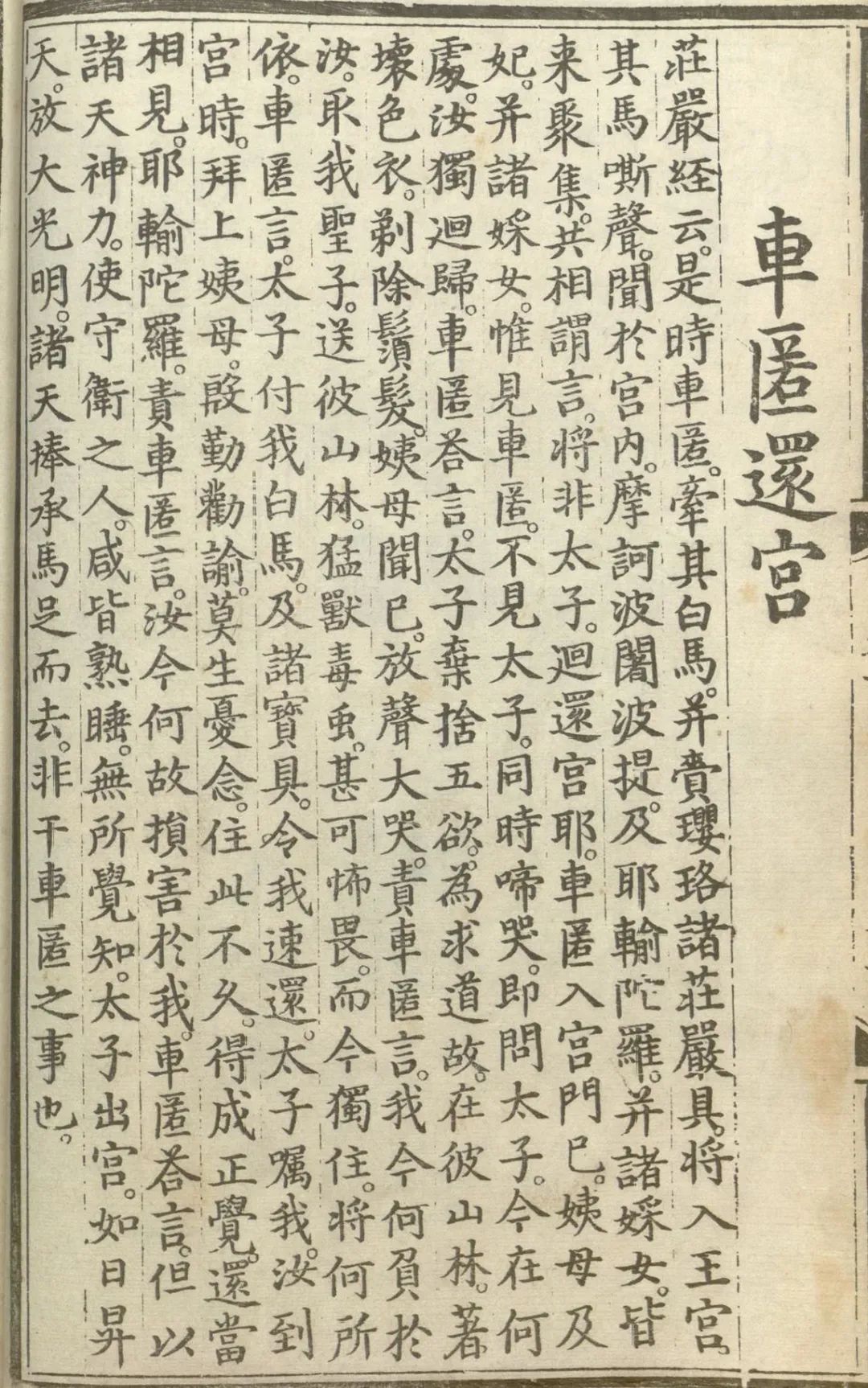 耶输陀罗责车匿言。汝今何故。损害于我。车匿答言。但以诸天神力使守卫之人咸皆熟睡。无所觉知。太子出宫。如日升天。放大光明。诸天捧承马足而去。非干车匿之事也。