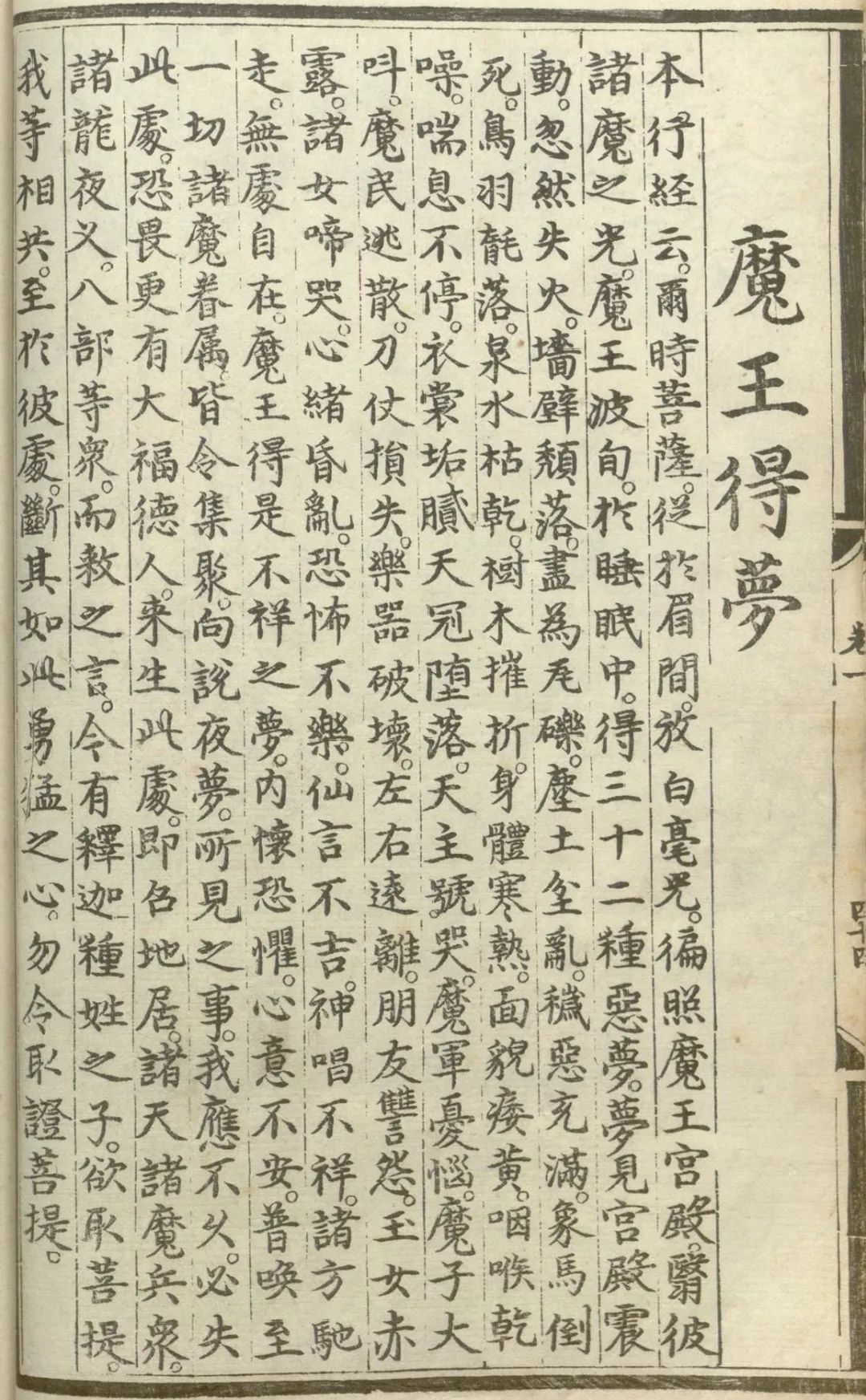 魔王得是不祥之梦。内怀恐惧。心意不安。普唤至一切诸魔眷属。皆令集聚。向说夜梦。所见之事。我应不久。必失此处。恐畏更有大福德人。来生此处。
