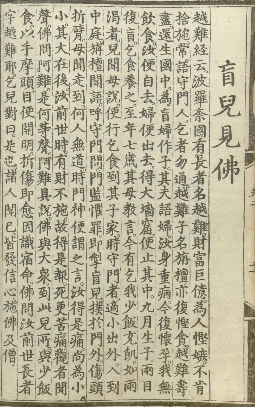 观者甚众。其声远闻。佛问阿难。是何等声。阿难具说。佛与大众。到此儿所。与少饭食。以手摩头。目便开明。折伤即愈。因识宿命。