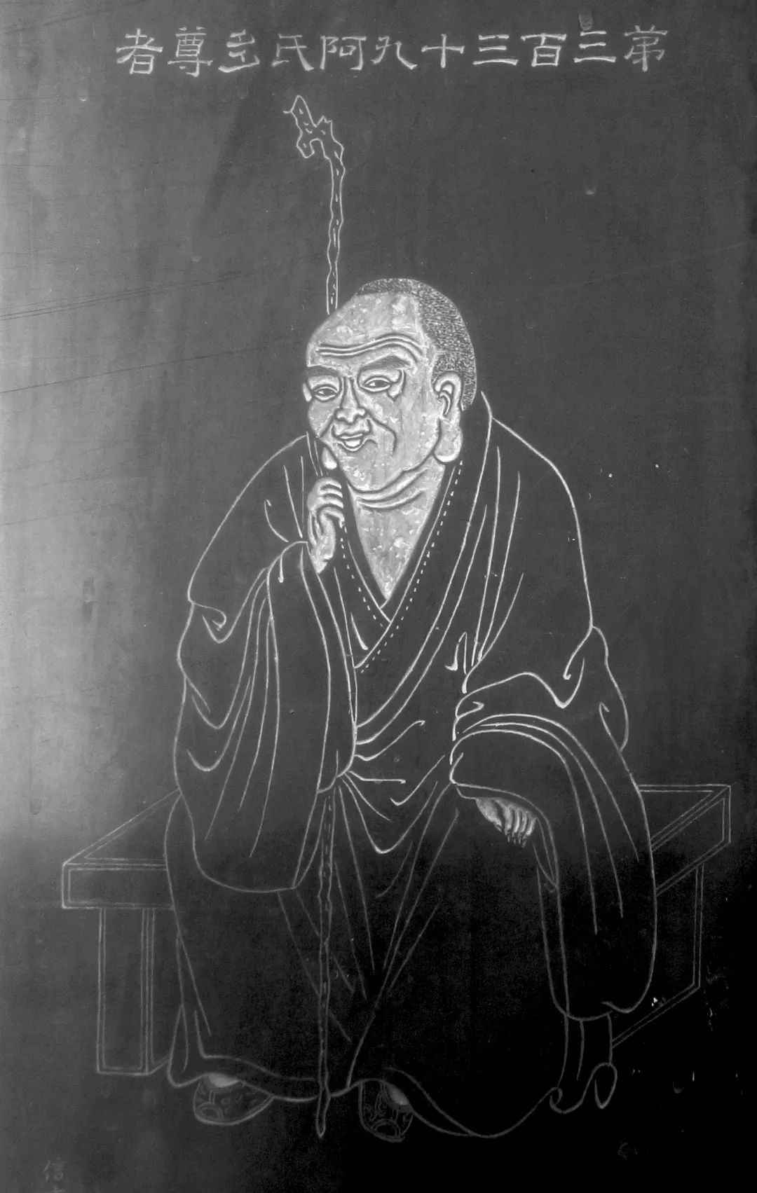 五百罗汉第叁佰叁拾玖尊阿氏多尊者,又作呵逸多。为受佛敕永住此世济度众生之十六罗汉中第十五尊,与其眷属一千五百阿罗汉共住于鹫峰山,为护持正法,饶益有情的圣者。