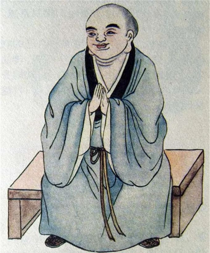 尊者法相所现为正面而坐,双耳垂肩,面露笑容,双手合十。