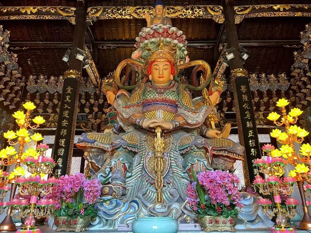 事实上,韦驮菩萨和浙江天目山宿缘深厚,据史传、方志等史籍记载,西天目山从有佛教开山以来,韦驮菩萨就常在此山度众应化,灵验屡彰,圣迹昭然!到了近现代,在临安地区民间还流传着许多韦驮菩萨的感应故事。如此种种,更使天目山成为名播寰宇的韦驮菩萨应迹道场,而韦驮菩萨在自己的道场以坐像示人,自然也就不难理解了。