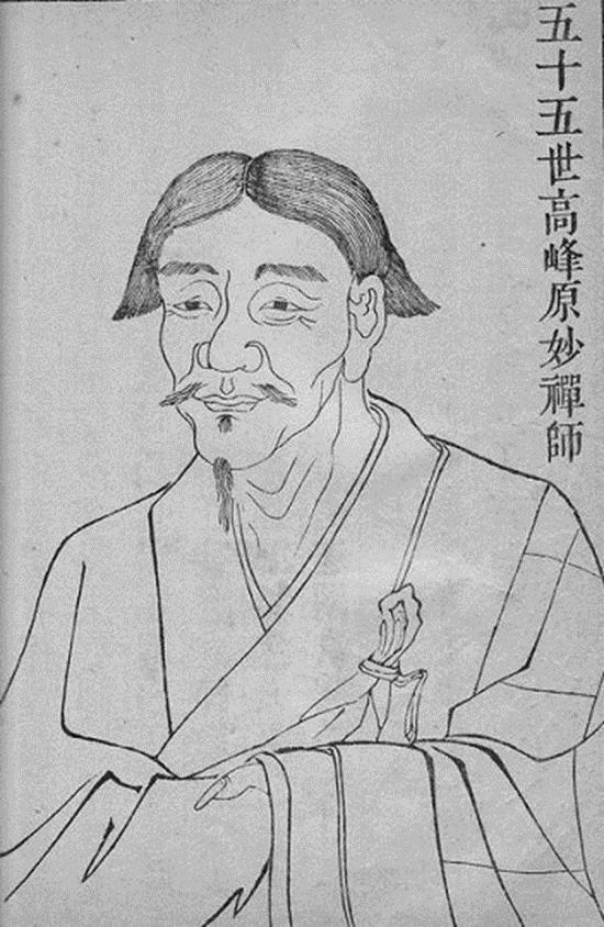 高峰原妙禅师(1238—1295)是临济宗雪岩祖钦禅师最著名的弟子。苏州吴江人,十五岁出家,十七岁受具足戒,先学天台教义,二十岁到杭州净慈寺拜谒断桥妙伦禅师,立死限三年,勤苦修道。后参叩雪岩祖钦,终获法意。至元十六年(1279),高峰禅师来到天目山西峰,于师子岩修葺茅棚居住。