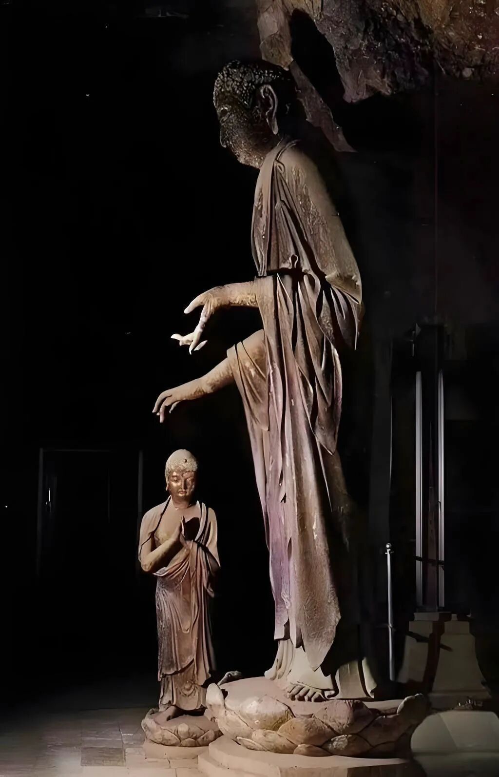佛陀在静坐中忽然想起罗睺罗,佛陀以天眼察知到罗睺罗的危险,即刻走到厕所,佛陀先咳嗽一声,里面也咳嗽一声,佛陀问道:“里面是什么人?”