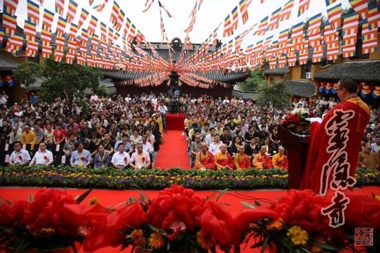 现在,天宝禅寺已经建成了天王殿、华严殿、念佛堂、东西厢房等建筑,本次启建的法会是为念佛堂落成、佛像开光和大雄宝殿奠基。