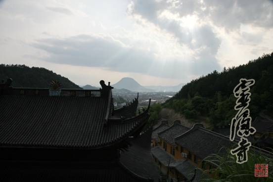 天宝禅寺与灵隐寺有着甚深因缘。它位于浙江省金华东阳市湖溪镇,座落于镇东500米处一个三面环山的山丘上,景色秀美。左右双峰夹峙,如威风凛凛的护法神,护持看守着这片佛国净土。站在天宝禅寺极目远眺,正前方远处山峦起伏,其中一峰如馒头状,被戏称为天宝禅寺版的"富士山"。天宝禅寺初建于1943年。当年青的光泉法师于1990年赴上海佛学院求学,途经此地时,已是道场破败、佛法凋敝,于是他概然受居士之请,住持天宝禅寺,开始重兴这座禅门道场,他还组织成立东阳市佛教协会并亲自担任第一任会长,为东阳市佛教文化发展留下了一段佳话。
