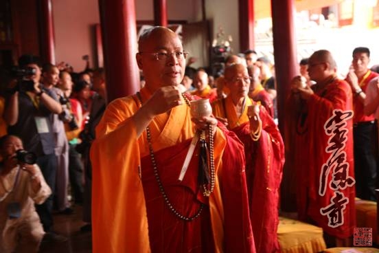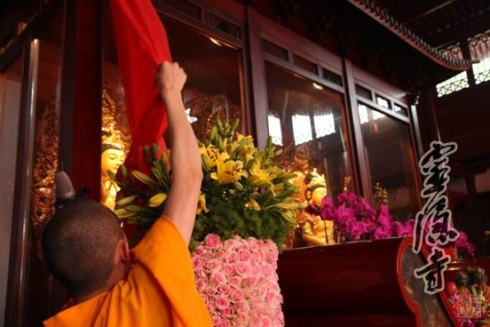 我寺方丈光泉法师、首座继云法师以杨枝净水洒佛像