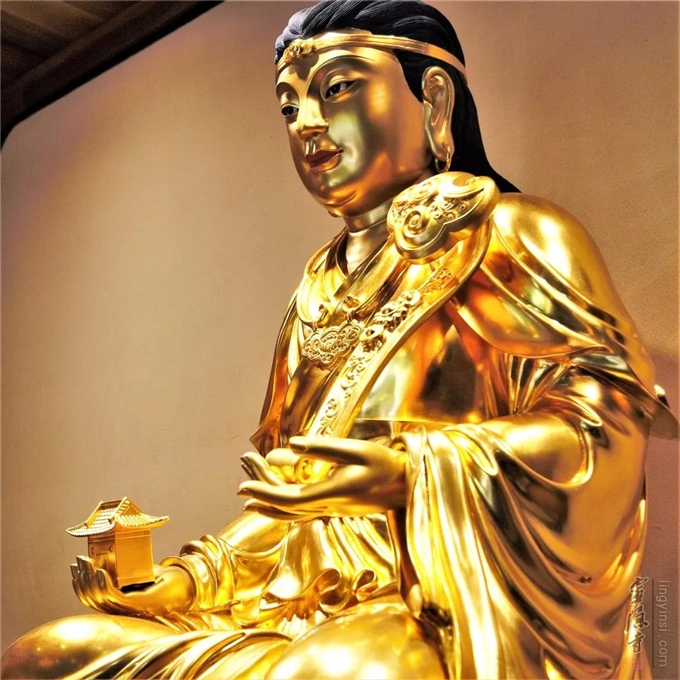 杭州灵隐寺伽蓝殿伽蓝菩萨(祇陀太子右手的房子代表祇园)