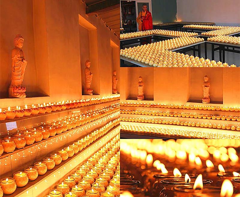得已欢喜,足作一灯,担向精舍,奉上世尊,置于佛前众灯之中,自立誓愿:"我今贫穷,用是小灯,供养于佛,以此功德,令我来世得智慧照,灭除一切众生垢闇。"作是誓已,礼佛而去。乃至夜竟,诸灯尽灭,唯此独燃。是时目连,次当日直,察天已晓,收灯摒挡,见此一灯,独燃明好,膏炷未损,如新燃灯,心便生念:白日燃灯,无益时用,欲取灭之,暮规还燃。实时举手,扇灭此灯,灯焰如故,无有亏灭;复以衣扇,灯明不损。