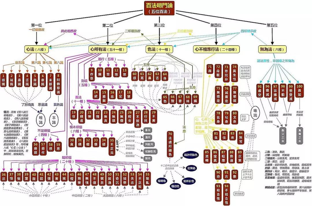 ⑤随烦恼有二十:忿、恨、恼、覆、诳、谄、憍、害、嫉、悭、无惭、无愧、不信、懈怠、放逸、昏沉、掉举、失念、不正知、散乱。