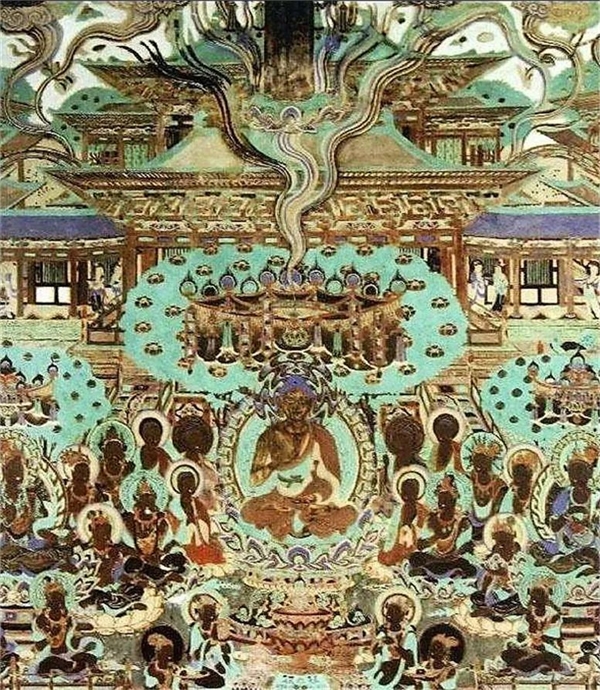 西方极乐世界的清净庄严也离不开树。在《佛说阿弥陀经》中说:“舍利弗,彼佛国土,微风吹动诸宝行树及宝罗网,出微妙音。譬如百千种乐,同时俱作。闻是音者,自然皆生念佛、念法、念僧之心。舍利弗,其佛国土成就如是功德庄严”。极乐世界的树有这样不可思议的功德。