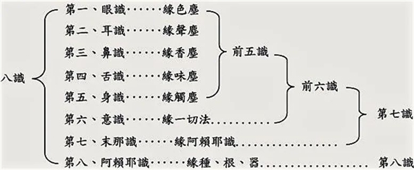意识依意根与法尘才能从如来藏中生起,意根与法尘也是从看似痴呆的第八识中生起,生起后的意识、意根、法尘都要在第八识的支援下才能继续存在及运作。
