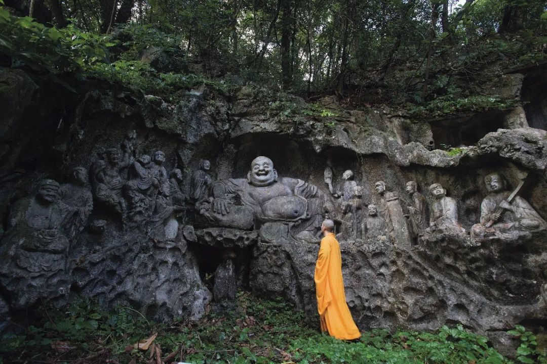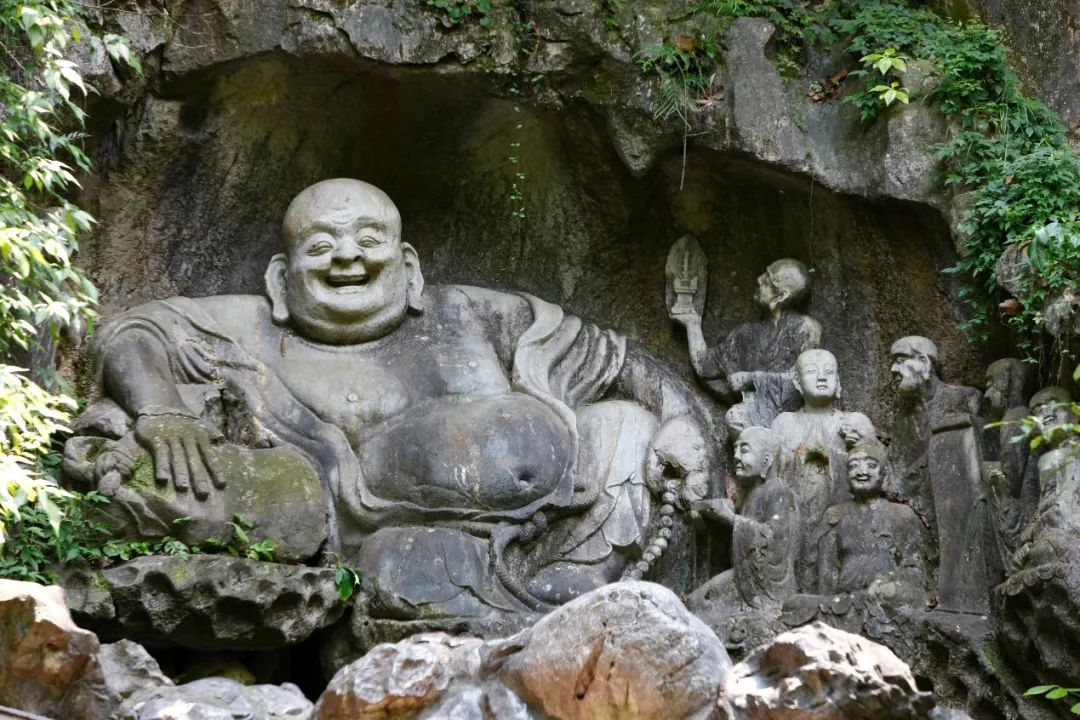 于是,人们争相描摹他的形象供奉。而他游化过的广大江浙地区,首先以他那袒胸露腹、笑口常开的造像,取代了原来璎珞庄严的弥勒佛像,进入了各个寺院的天王殿。