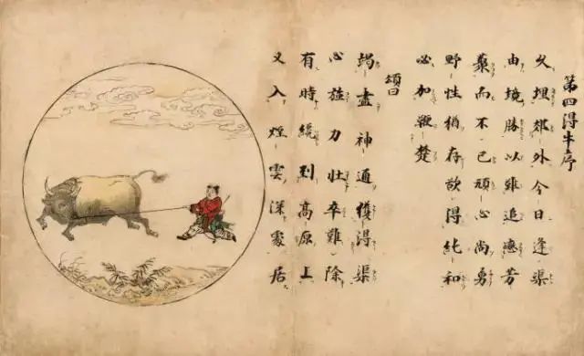 “牧牛”,喻悟后调心。