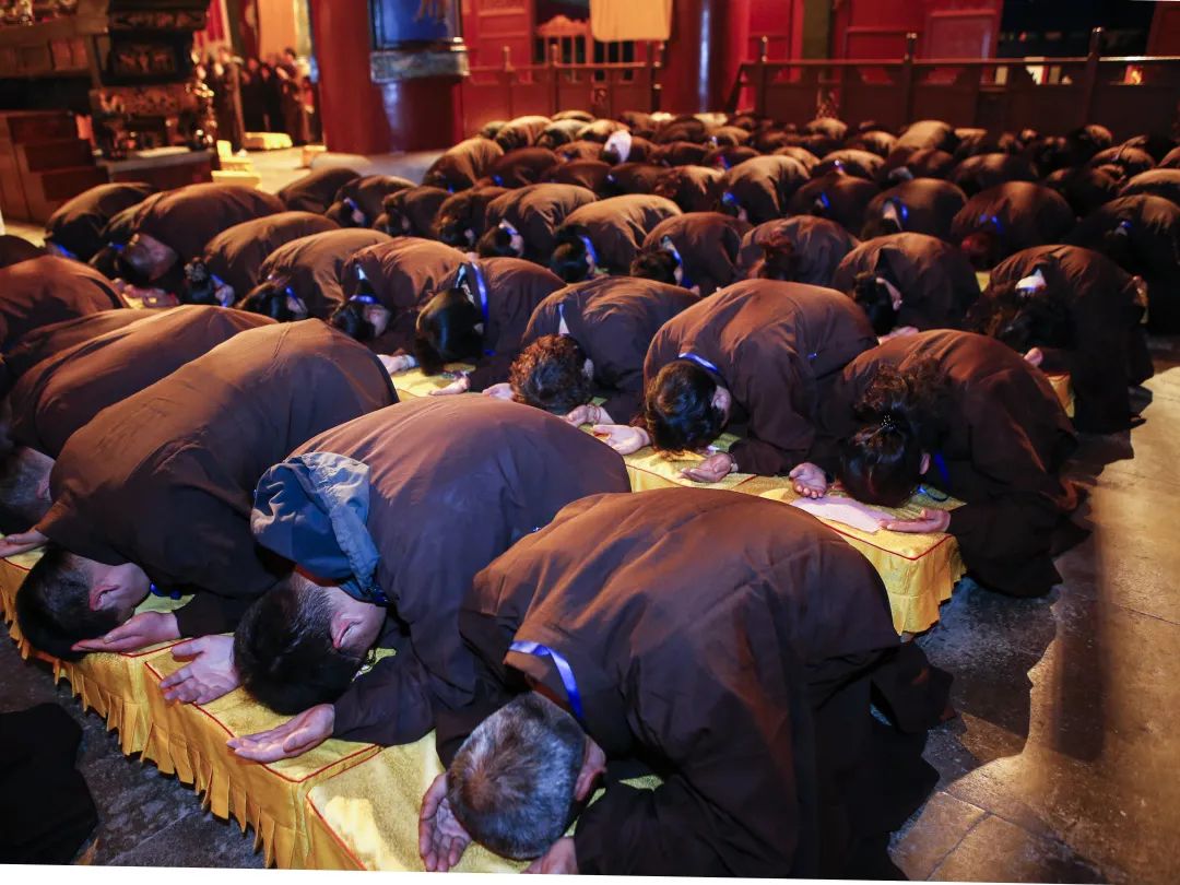 在经书翻页或需要跪拜时,道场出于对初发心者的慈悲,有时还会有知客师在现场提示“拜”或“起”,只要按照提示,跟随在场同修们一起做即可。