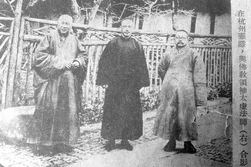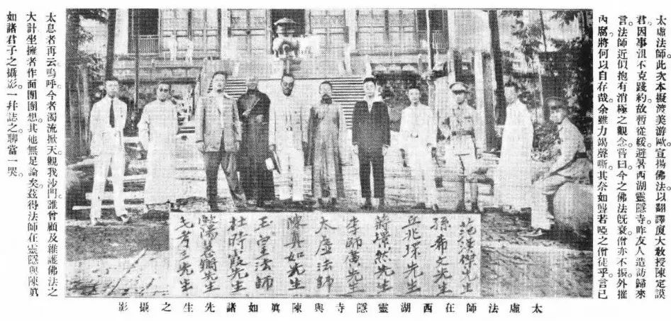 ▲太虚法师在西湖灵隐寺与陈真如诸先生之摄影(1927)