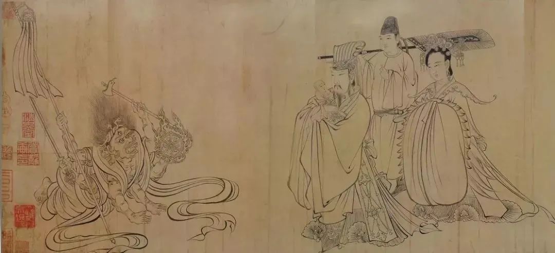 一切世间诸天及人皆欢喜赞叹,生大恭敬。其时花园中忽然涌出二池,一冷一暖,贮满清净香水。又见虚空中,有九龙吐水,浴太子身。天人们奏着美妙动听的音乐,空中散下五彩缤纷的香花供养太子。一时十方大地六种震动,一切众生俱感受到曾所未有的欢乐。