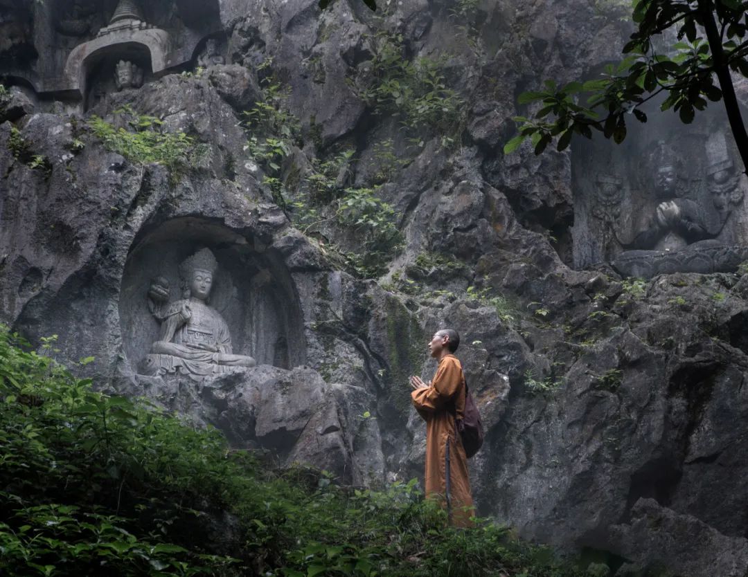 想当年,在东阳行化一方的傅大士,为了感动人主,令佛法得到普及,命其弟子傅昉奉书粱武帝,条陈诸善。在得到梁武帝的召见后,自中大通六年(534)起,不辞辛劳,先后三次亲赴建康,推行法化,利益无边。傅大士进京面圣途中,路过钱塘,经停于凤凰山,宴坐之处经后世兴建,乃有今日遗迹。