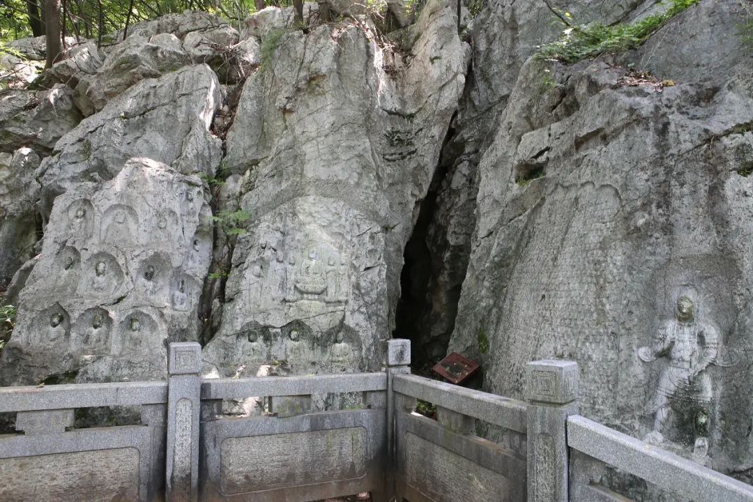 根据现场解说牌介绍,石龙洞造像开凿于北宋建中靖国元年(1101),依自然山势雕凿于数块石灰岩上,造像题材有释迦如来与弟子、菩萨、金刚力士、罗汉等历经千载风霜雨露的侵蚀,石刻佛像仍然轮廓分明。