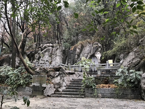 此处的位置为将台山南坡,玉皇山慈云岭右侧。石龙洞所在地又称为下石龙院,从慈云岭(上石龙院)至吴越郊坛这一路线,俯瞰起来就好似一条石造的巨龙逶迤盘旋于玉皇山,“石龙”一名正是由此而来。