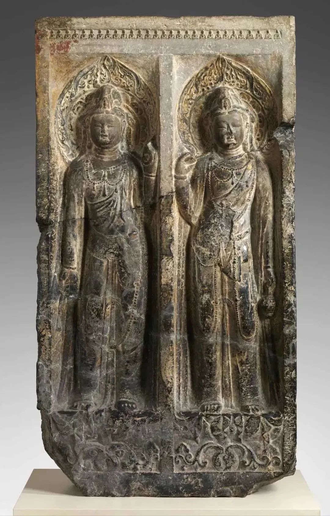 二者的主要区别是:大势至菩萨头上的宝冠有一个宝瓶为标志,而观世音菩萨以头上肉髻中有一尊佛像为标志。在手中所持法物方面,观世音菩萨持净瓶,大势至菩萨持莲花。
