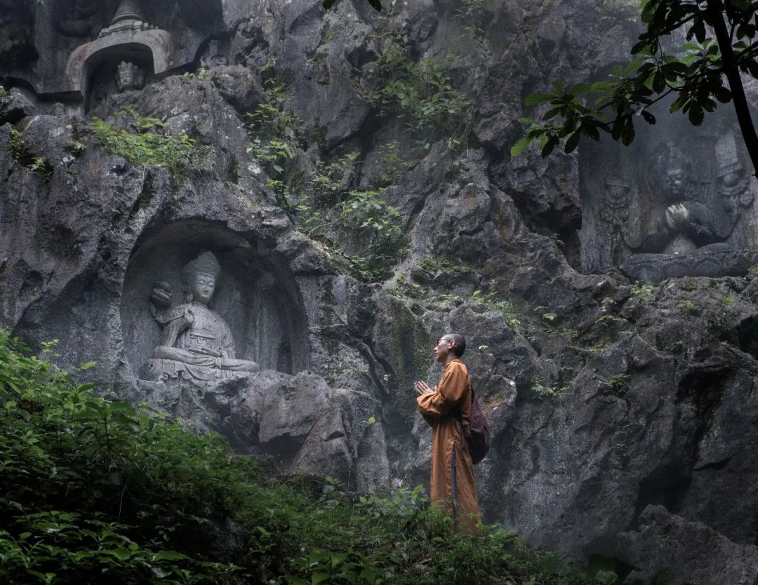 亲眼看到好友被砍,命丧黄泉,龙树的脑海里不断想起伙伴们被杀的情景,不禁心生悲苦。他领悟到贪欲是惹祸的根源,并想起了曾经接触过的佛教,心中渐渐清朗起来。龙树在迷途中找回了方向,痛定思痛,决心皈依佛门。