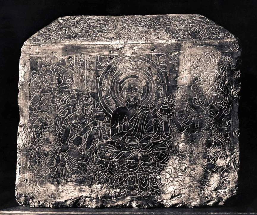 七世纪唐代线刻石雕-药师琉璃光佛坐像