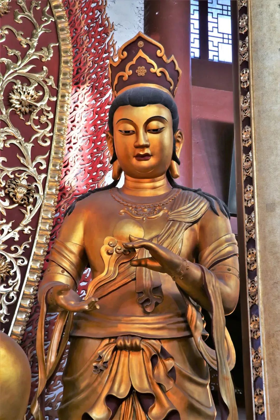 日光菩萨与月光菩萨共同辅弼东方净土药师如来弘法,一左一右,普度有情,次补佛位。