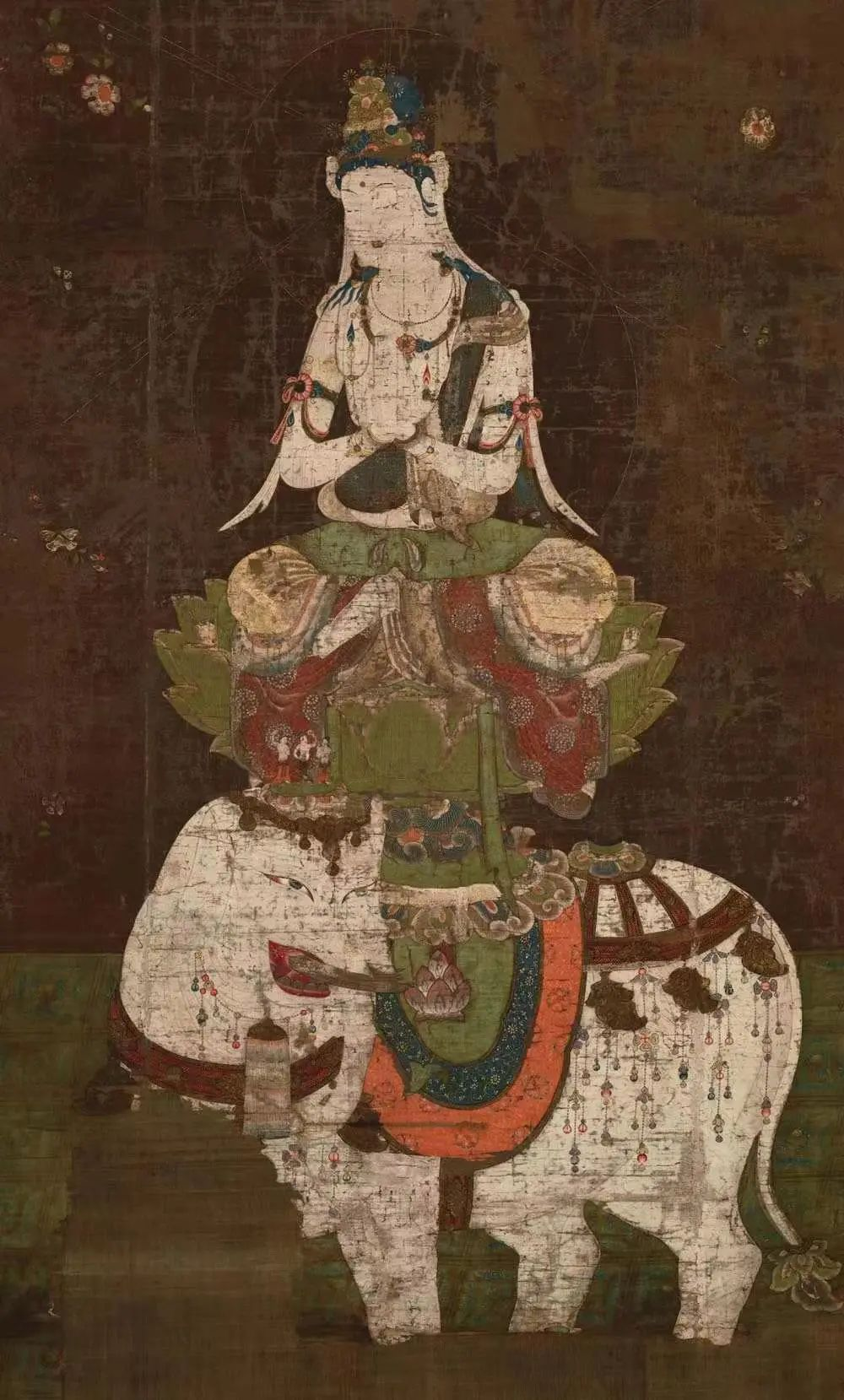 普贤菩萨是大乘菩萨的大愿大行的代表,《华严经》中说,一切佛法归于毗卢遮那佛及文殊菩萨、普贤菩萨二大士,三者并称“华严三圣”,普贤菩萨代表一切诸佛的理德与行德,与文殊菩萨摩诃萨的智德、证德相对(理与智一对,行与证一对),两尊菩萨并为毗卢遮那佛的两大胁侍。
