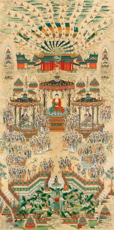 ②天如:元代禅师,名惟则,号天如。得法于天目山中峰明本禅师,并嗣其法。其后止住于苏州姑苏城外师子林,弘扬禅风。著有《楞严经圆通疏》《禅宗语录》《净土或问》《十法界图说》及《师子林天如和尚语录》等书。《净土或问》云:“多见今之禅者,不究如来之了义,不知达磨之玄机,空腹高心,习为狂妄,见修净土则笑之曰:‘彼学愚夫愚妇之所为,何其鄙哉!’余尝论其非鄙愚夫愚妇也,乃鄙文殊、普贤、龙树、马鸣等也。”普贤、文殊、马鸣、龙树是华严宗祖师,《华严经》末后,普贤菩萨以十大愿王导归极乐,故天如禅师认为轻视净土就是轻视华严。