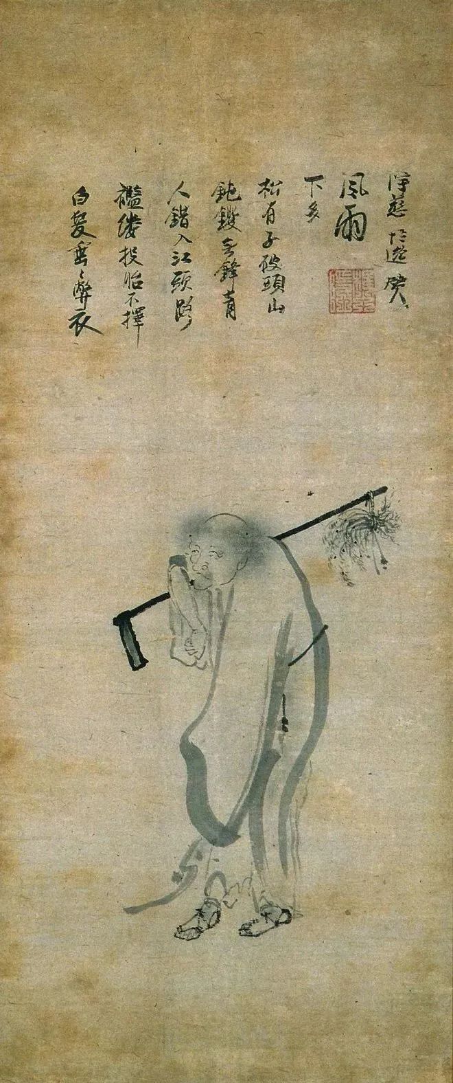 “貌古形疏”形容画像中的老僧外貌古朴萧疏;“倚杖藜”,老僧年事已高,扶着杖藜。“分明画出须菩提”,站在画像前的,活灵活现就是佛陀的弟子须菩提。诗中以须菩提之相貌来作比拟,绝非信手拈来,而是蕴含深意。佛陀证悟诸法缘起性空,属于第一义谛,非是假说、喻说、方便说。