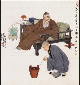 沩山灵佑开悟的第二天,和百丈怀海一起上山工作。百丈问他有没有带火种来,沩山说有,百丈问火种在哪里,沩山捡了一枝柴吹两下,然后交给百丈。百丈说:"如虫御木。"
