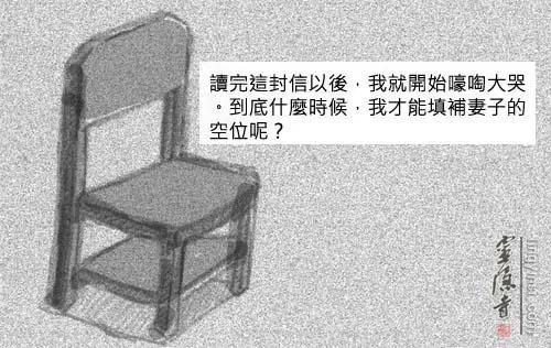 读完这封信以后,他嚎啕大哭。他不停地问:自己要怎样才能填补妻子的空位呢。