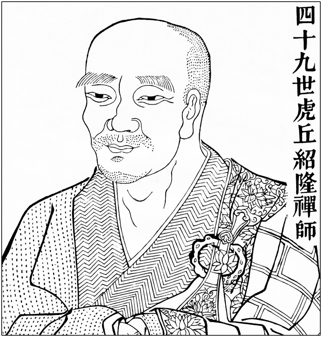 绍隆禅师为南岳下十五世,住虎丘山时众僧云集、道声大扬,然其门风孤峻,得法者仅天童应庵昙华一人;法孙则有密庵咸杰等人;密庵之下,破庵祖先、松源崇岳、曹源道生等高僧辈出,法道大兴。此脉因以绍隆禅师为开山祖师,故称其法系为“虎丘派”,与圆悟克勤禅师另一弟子大慧宗杲禅师所开演的“大慧派”,同属临济宗杨岐派下。元代以后,门流更奔溢至日本,可谓盛矣。