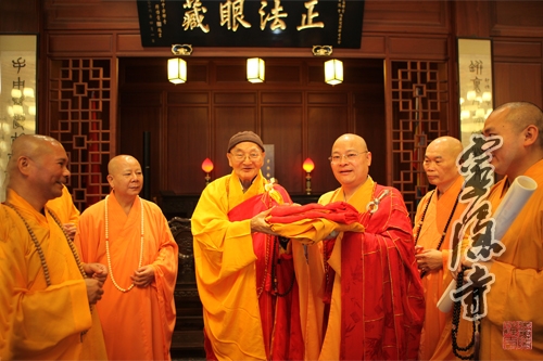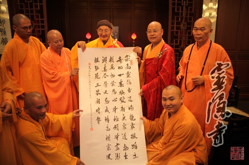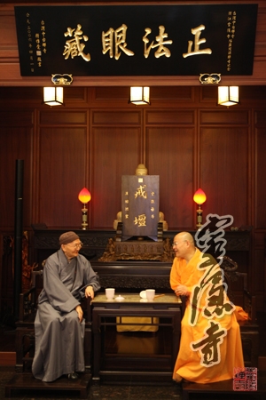 2013年10月10日,杭州灵隐寺传授护国兴圣二部僧三坛大戒法会期间,美国中华佛教会会长妙峰长老参访灵隐寺,受到我寺方丈光泉大和尚的热情接待。